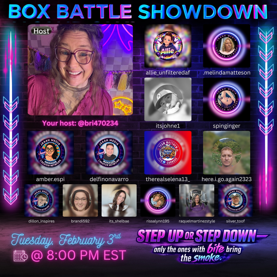 February 2, 2026 - February 8, 2026 Possible Pop-Ups (follow for updates) All Time EST MONDAY 10 AM: Spin Social8 PM: Spin’s Wheel of Fortune TUESDAY 10 AM: Spin Social8 PM: Box Battle Showdown with @bri4702348 PM: Spin AFTER DARK WEDNESDAY 10 AM: Spin Social3 PM: Spin’s Who Wants to Be a Millionaire8 PM: Spin’s Card Sharks THURSDAY 10 AM: Spin Social8 PM: Spin’s Wheel of Fortune FRIDAY 10 AM: Spin Social8 PM: Spin’ AFTER DARK SATURDAY 12 PM: Spin Social8 PM: Spin’s Party Games SUNDAY 8 PM: Spin’s Party Games